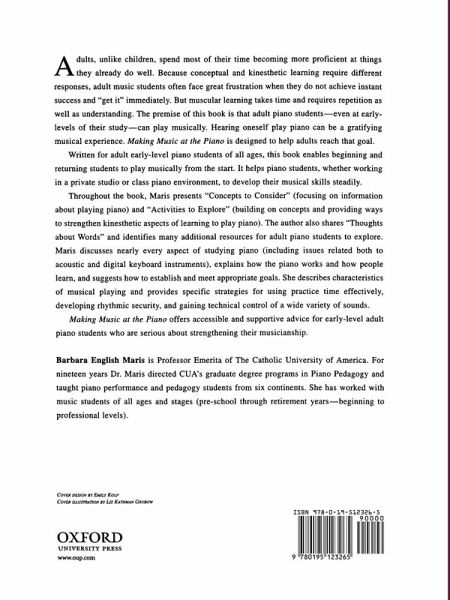Beginners can make music at the piano and play musically even during the earliest phases of piano study, and this books shows how. Written for beginning adult students of any age, the book enables students to play gratifying music right away while continuing to develop their skills steadily, whether they are studying on their own or with an instructor. Throughout, the book features numerous Concepts to Consider (focusing on conceptual learning) and Activities to Explore (which build on the Concepts and emphasize ways to strengthen the kinesthetic aspects of learning). The author discusses nearly every aspect encountered by the beginner, from appropriate goals and good playing habits to the basics of how people learn and how the piano works. She provides a hands-on explanation of the characteristics of music playing and suggests specific strategies for using practice time effectively and for developing rhythmic security and technical control of sound. For students who to play as well as practice, this book is the ideal guide.