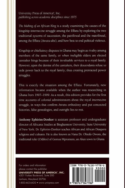 This book is a study examining the causes of the kingship internecine struggle among the Effutu by exploring the two traditional systems of succession, the patrilineal and the matrilineal among the Effutu (Awutu-abe), and how best to end political violence.