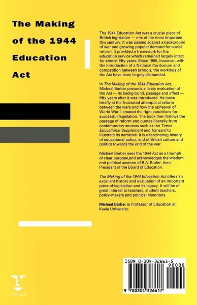 The 1944 Education Act was a crucial piece of British legislation - one of the most important this century. It was passed against a background of war and growing popular demand for social reform. It provided a framework for the education service which remained largely intact for almost fifty years. Since 1988, however, with the introduction of a National Curriculum and competition between schools, the workings of the Act have been largely dismantled. In The Making of the 1944 Education Act, Michael Barber presents a lively evaluation of the Act - its background, passage and effect - fifty years after it was introduced. He looks briefly at the frustrated attempts at reform between the wars and how the upheaval of World War II created the right conditions for successful legislation. The book then follows the passage of reform and quotes liberally from contemporary sources such as the Times Educational Supplement and Hansard to illustrate its narrative. It is a fascinating history of educational policy, and of British culture and politics towards the end of the war.