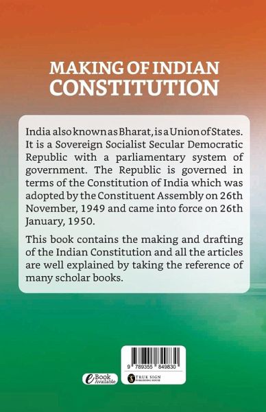 India also known as Bharat, is a Union of States. It is a Sovereign Socialist Secular Democratic Republic with a parliamentary system of government. The Republic is governed in terms of the Constitution of India which was adopted by the Constituent Assembly on 26th November, 1949 and came into force on 26th January, 1950. This book contains the making and drafting of the Indian Constitution and all the articles are well explained by taking the reference of many scholar books.