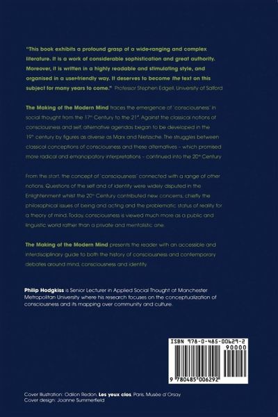 The Making of the Modern Mind traces the emergence of "consciousness" in social thought from the 17th Century to the 21st. Against the classical notions of consciousness and self, alternative agendas began to be developed in the 19th Century by figures as diverse as Marx and Nietzsche. The struggles between classical conceptions of consciousness and these alternatives--which promised more radical and emancipatory interpretations--continued into the 20th Century.From the start, the concept of "consciousness" connected with a range of other notions. Questions of the self and of identity were widely disputed in the Enlightenment whilst the 20th Century contributed new concerns, chiefly the philosophical issues of being and acting and the problematic status of reality for a theory of mind. Today, consciousness is viewed much more as a public and linguistic world rather than a private and mentalistic one.The Making of the Modern Mind explores the contemporary debates around consciousness and identity, crucially setting the analysis within its social and historical context. Written in a clear and engaging style, the book will be of interest to students in Philosophy, Psychology, Sociology and Anthropology.