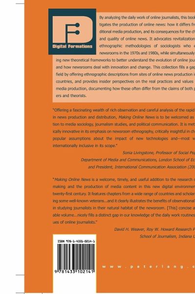 «Offering a fascinating wealth of rich observation and careful analysis of the rapid changes in news production and distribution, 'Making Online News' is to be welcomed as an addition to media sociology, journalism studies, and political communication. It is methodologically innovative in its emphasis on newsroom ethnography, critically insightful in challenging popular assumptions about the impact of new technologies and - most welcome - internationally inclusive in its scope.» (Sonia Livingstone, Professor of Social Psychology, Department of Media and Communications, London School of Economics, and President, International Communication Association (2007-2008)) «'Making Online News' is a welcome, timely, and useful addition to the research on newsmaking and the production of media content in this new digital environment of the twenty-first century. It features chapters from a wide range of countries and scholars, including some well-known veterans...and it clearly illustrates the benefits of observational research in studying journalists in their natural habitat of the newsroom. [This] concise and readable volume...nicely fills a distinct gap in our knowledge of the daily work routines and values of online journalists.» (David H. Weaver, Roy W. Howard Research Professor, School of Journalism, Indiana University)
