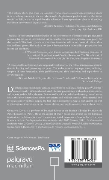 "This volume shows that there is a distinctly Francophone approach to peacemaking which is in refreshing contrast to the overwhelmingly Anglo-Saxon predominance of the literature in the field. It is to be hoped that this volume will have a prominent place on all reading lists about international organizations." - Andrew Williams, Professor of International Relations, University of St Andrews, UK "Realists, in their attempted domination of the interpretation of international politics, tend to downplay the role of international institutions (or the existence of international peace, for that matter). This book reminds us that there is another side to international politics than war and hard power. Written by a European group of academic analysts and diplomatic practitioners, it draws our attention to the capital role of international organization and negotiation, not in idealistic elegy but in careful evaluation of the accomplishments and challenges. The book is not just a European but a universalistic perspective that merits our attention." - I. William Zartman, Jacob Blaustein Distinguished Professor Emeritus of International Organization and Conflict Resolution, The Nitze School of Advanced International Studies (SAIS), The Johns Hopkins University"A conceptually sophisticated and empirically rich study of the role of international institutions in keeping and promoting the peace. The authors analyze key topic areas, including weapons of mass destruction, their proliferation and mediation and apply them to diverse regions." - Richard Ned Lebow, James O. Freedman Presidential Professor of Government, Dartmouth College