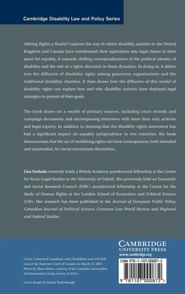 Making Rights a Reality? explores the way in which disability activists in the United Kingdom and Canada have transformed their aspirations into legal claims in their quest for equality. It unpacks shifting conceptualizations of the political identity of disability and the role of a rights discourse in these dynamics. In doing so, it delves into the diffusion of disability rights among grassroots organizations and the traditional disability charities. The book draws on a wealth of primary sources including court records and campaign documents and encompassing interviews with more than sixty activists and legal experts. While showing that the disability rights movement has had a significant impact on equality jurisprudence in two countries, the book also demonstrates that the act of mobilizing rights can have consequences, both intended and unintended, for social movements themselves.