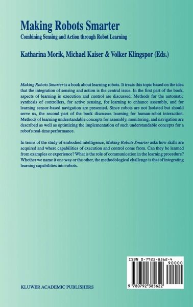 Making Robots Smarter is a book about learning robots. It treats this topic based on the idea that the integration of sensing and action is the central issue. In the first part of the book, aspects of learning in execution and control are discussed. Methods for the automatic synthesis of controllers, for active sensing, for learning to enhance assembly, and for learning sensor-based navigation are presented. Since robots are not isolated but should serve us, the second part of the book discusses learning for human-robot interaction. Methods of learning understandable concepts for assembly, monitoring, and navigation are described as well as optimizing the implementation of such understandable concepts for a robot's real-time performance.