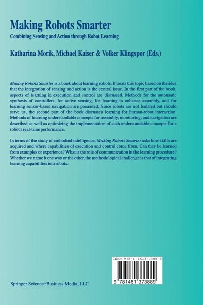 Making Robots Smarter is a book about learning robots. It treats this topic based on the idea that the integration of sensing and action is the central issue. In the first part of the book, aspects of learning in execution and control are discussed. Methods for the automatic synthesis of controllers, for active sensing, for learning to enhance assembly, and for learning sensor-based navigation are presented. Since robots are not isolated but should serve us, the second part of the book discusses learning for human-robot interaction. Methods of learning understandable concepts for assembly, monitoring, and navigation are described as well as optimizing the implementation of such understandable concepts for a robot's real-time performance.