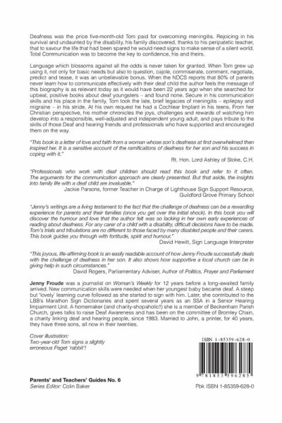 Language which develops 'against all the odds' is very precious. Words were not enough for Tom; it was signs that made sense of a world silenced by meningitis. Confidence came via joyful and positive steps to communication from babyhood; a brush with epilepsy, a cochlear implant in his teens and life as an independent young adult followed.