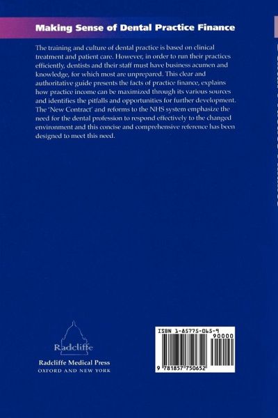 The training and culture of dental practice is based on clinical treatment and patient care. However in order to run their practices efficiently dentists and their staff must have business acumen and knowledge for which most are unprepared. This clear and authoritative guide presents the facts of practice finance explains how practice income can be maximised through its various sources and identifies the pitfalls and opportunities for further development. The 'New Contract' and reforms to the NHS system emphasize the need for the dental profession to respond effectively to the changed environment and this concise and comprehensive reference has been designed to meet this need.