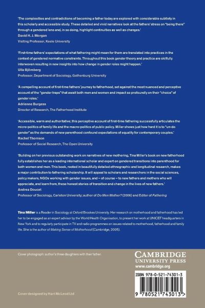 As family and work demands become more complex, who is left holding the baby? Tina Miller explores men's experiences of fatherhood and provides unique insights into paternal caring, changing masculinities and men's relations to paid work. She focuses on the narratives of a group of men as they first anticipate and then experience fatherhood for the first time. Her original, longitudinal research contributes to contemporary theories of gender against a backdrop of societal and policy change. The men's journeys into fatherhood are both similar and varied, and they illuminate just how deeply gender permeates individual lives, everyday practices and societal assumptions around caring for young children. This book acts as a companion to Making Sense of Motherhood (Cambridge University Press, 2005) and, together, these innovative studies reveal how gendered practices around caring become enacted. As family and work demands become more complex, who is left holding the baby? Tina Miller presents fascinating narrative accounts of gendered practices, paternal caring and paid work from first-time fathers as they make their journeys into fatherhood.