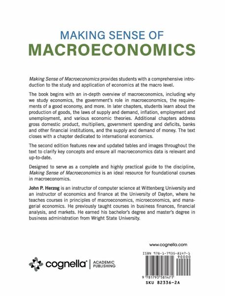 Making Sense of Macroeconomics provides students with a comprehensive introduction to the study and application of economics at the macro level. The book begins with an in-depth overview of macroeconomics, including why we study economics, the government's role in macroeconomics, the requirements of a good economy, and more. In later chapters, students learn about the production of goods, the laws of supply and demand, inflation, employment and unemployment, and various economic theories. Additional chapters address gross domestic product, multipliers, government spending and deficits, banks and other financial institutions, and the supply and demand of money. The text closes with a chapter dedicated to international economics. The second edition features new and updated tables and images throughout the text to clarify key concepts and ensure all macroeconomics data is relevant and up-to-date. Designed to serve as a complete and highly practical guide to the discipline, Making Sense of Macroeconomics is an ideal resource for foundational courses in macroeconomics.