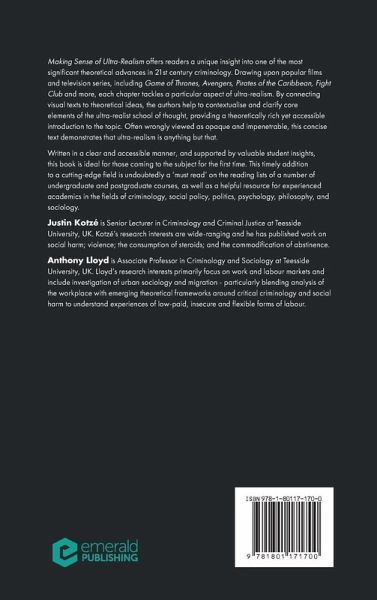 Making Sense of Ultra-Realism offers a unique insight into one of the most significant theoretical advances in 21st century criminology, drawing upon popular films and television series to contextualise and clarify the ultra-realist school of thought and providing a theoretically rich yet accessible introduction to the topic.