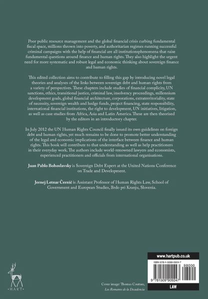Poor public resource management and the global financial crisis curbing fundamental fiscal space, millions thrown into poverty, and authoritarian regimes running successful criminal campaigns with the help of financial assistance are all phenomena that raise fundamental questions around finance and human rights. They also highlight the urgent need for more systematic and robust legal and economic thinking about sovereign finance and human rights. This edited collection aims to contribute to filling this gap by introducing novel legal theories and analyses of the links between sovereign debt and human rights from a variety of perspectives. These chapters include studies of financial complicity, UN sanctions, ethics, transitional justice, criminal law, insolvency proceedings, millennium development goals, global financial architecture, corporations, extraterritoriality, state of necessity, sovereign wealth and hedge funds, project financing, state responsibility, international financial institutions, the right to development, UN initiatives, litigation, as well as case studies from Africa, Asia and Latin America. These chapters are then theorised by the editors in an introductory chapter. In July 2012 the UN Human Rights Council finally issued its own guidelines on foreign debt and human rights, yet much remains to be done to promote better understanding of the legal and economic implications of the interface between finance and human rights. This book will contribute to that understanding as well as help practitioners in their everyday work. The authors include world-renowned lawyers and economists, experienced practitioners and officials from international organisations.