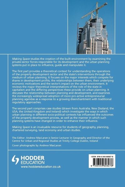 Making Space studies the built environment by examining the private-sector forces responsible for its development and the urban planning systems put in place to influence, guide and manipulate its outcomes. The first part provides a theoretical context for understanding the functions of the property development sector and the state's interventions through the medium of urban planning. It analyses the relationship between planning and development, and focuses on the increasingly widespread adoption of more pro-active entrepreneurial planning agendas as a response to a growing disenchantment with traditional regulatory approaches. The second part comprises case studies (drawn from Australia, New Zealand, the USA, the United Kingdom and Ireland) which investigate the ways in which urban planning in different socio-political contexts has influenced the outcomes of the property development process as well as the manner in which such planning systems have changed in order to enhance their influence.