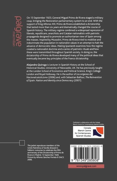 'An essential book on Spanish History...Alejandro Quiroga's work will not leave the reader unmoved. Making Spaniards is a seductive book, both in terms of analysis and findings.' - Historia Contemporánea