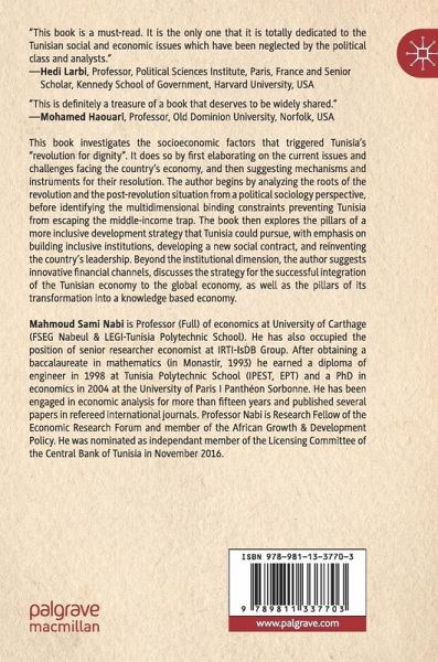 This book investigates the socioeconomic factors that triggered Tunisia's "revolution for dignity" and the current issues and challenges facing its economy while suggesting mechanisms and instruments for their resolution. The author begins by analyzing the roots of the revolution and the post-revolution situation from a political sociology perspective and then diagnoses the Tunisian economy before and after the revolution and identifies the multidimensional binding constraints preventing it from escaping the middle-income trap. The book then explores the pillars of an inclusive development strategy that Tunisia should pursue. The emphasis is made on building inclusive institutions, developing a new social contract and reinventing the country's leadership. Beyond the institutional dimension, the author suggests innovative financial channels, discusses the strategy of a successful integration of the Tunisian economy in the global economy as well as the pillars of its transformationinto a knowledge-based economy.