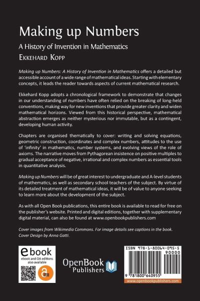 Making up Numbers: A History of Invention in Mathematics offers a detailed but accessible account of a wide range of mathematical ideas. Starting with elementary concepts, it leads the reader towards aspects of current mathematical research. The book explains how conceptual hurdles in the development of numbers and number systems were overcome in the course of history, from Babylon to Classical Greece, from the Middle Ages to the Renaissance, and so to the nineteenth and twentieth centuries. The narrative moves from the Pythagorean insistence on positive multiples to the gradual acceptance of negative numbers, irrationals and complex numbers as essential tools in quantitative analysis. Within this chronological framework, chapters are organised thematically, covering a variety of topics and contexts: writing and solving equations, geometric construction, coordinates and complex numbers, perceptions of 'infinity' and its permissible uses in mathematics, number systems, and evolving views of the role of axioms. Through this approach, the author demonstrates that changes in our understanding of numbers have often relied on the breaking of long-held conventions to make way for new inventions at once providing greater clarity and widening mathematical horizons. Viewed from this historical perspective, mathematical abstraction emerges as neither mysterious nor immutable, but as a contingent, developing human activity. Making up Numbers will be of great interest to undergraduate and A-level students of mathematics, as well as secondary school teachers of the subject. In virtue of its detailed treatment of mathematical ideas, it will be of value to anyone seeking to learn more about the development of the subject.