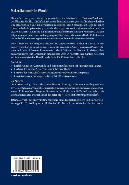 Dieses Buch analysiert, wie sich gegenwärtige Geschehnisse - die Covid-19-Pandemie, der Ukraine-Konflikt, die Inflation und die Leitzinsanpassungen - auf inhärente Risiken und Bilanzposten von Unternehmen auswirken. Der Schwerpunkt liegt auf einer theoretisch-deskriptiven Analyse, welche die tiefgreifenden Auswirkungen dieser makroökonomischen Phänomene auf inhärente Risikofaktoren umfassend beleuchtet. Danach folgt eine empirische Untersuchung ausgewählter Unternehmen des DAX-40-Index, um die in der Theorie vorhergesagten ökonomischen Entwicklungen zu validieren.