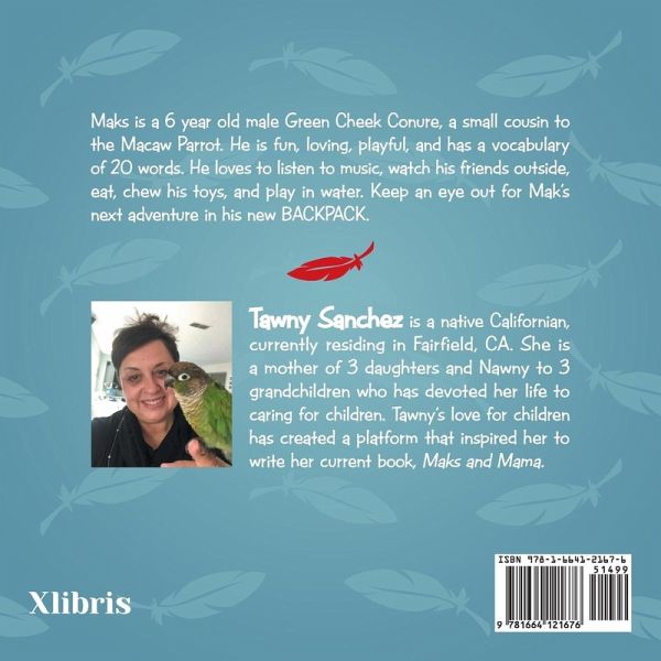 Maks is a 6 year old male green cheek Conure small parrot cousin to the Macaw. Maks is fun loving, playful and has a vocabulary of 20 words. Maks loves to listen to music, watching his friends outside, eating, chewing his toys and playing in water. Keep an eye out for Maks next adventure, his new backpack.