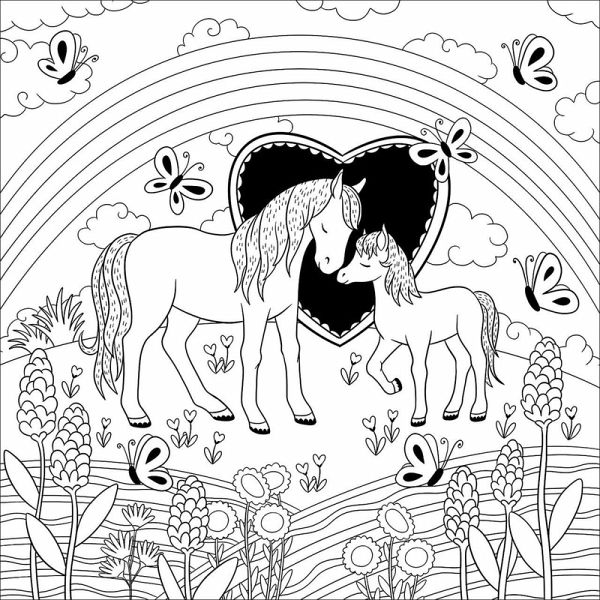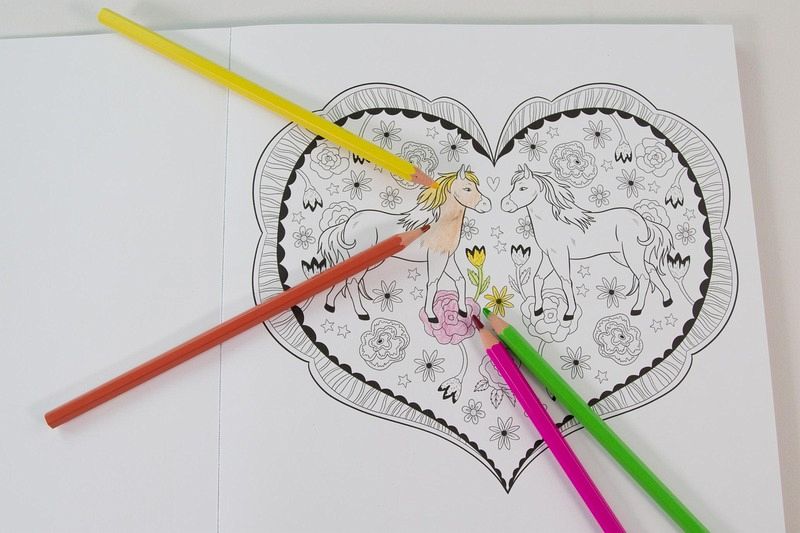 Mit 44 pferdigen Ausmalbildern und Platz für eigene Zeichnungen
