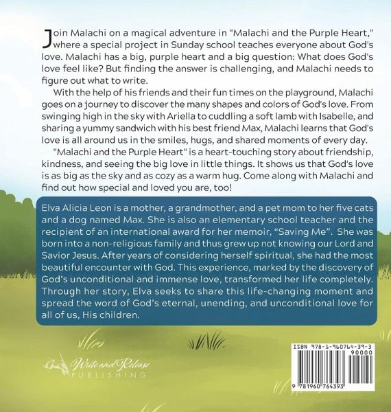 Dive into the heartwarming pages of "Malachi and the Purple Heart" and embark on a magical adventure that will illuminate the essence of God's love through the eyes of a curious young boy. Malachi, with his big, purple heart and an even bigger question, sets out to uncover what God's love truly feels like. The journey is not without its challenges, as Malachi struggles to find the right words to describe his feelings. However, with the unwavering support of his friends and their playful escapades on the playground, Malachi embarks on an enlightening quest to discover the boundless shapes and colors of God's love. "Malachi and the Purple Heart" is more than just a story; it's a celebration of friendship, kindness, and the extraordinary love that surrounds us all. Through Malachi's eyes, readers will learn that God's love is as expansive as the sky above and as comforting as a warm embrace. Join Malachi on this delightful journey and discover the special and profound love that awaits you, too. In "Malachi and the Purple Heart," Elva Alicia Leon extends an invitation to readers to explore the manifestations of God's love in everyday moments. Drawing from her personal transformation and her professional experiences as a teacher, she crafts a story that is both engaging and enlightening, aimed at readers young and old. Elva's literary talents have been internationally recognized with an award for her poignant memoir, "Saving Me," a testament to her profound narrative abilities and her capacity to touch hearts deeply. Her journey is unique, having been born into a non-religious family, Elva navigated life's complexities without the guiding light of faith. However, it was this very path that led her to a stunning and transformative encounter with God. Perfect for bedtime stories, Sunday school reading, and moments of reflection, "Malachi and the Purple Heart" promises to touch your heart and remind you of the simple yet profound ways God's love manifests in our lives. Don't miss this enchanting exploration of love, friendship, and the beauty found in the smallest of gestures.