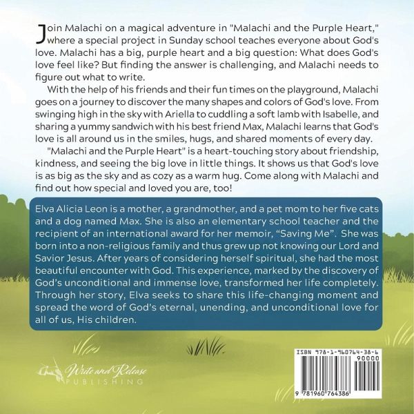 Dive into the heartwarming pages of "Malachi and the Purple Heart" and embark on a magical adventure that will illuminate the essence of God's love through the eyes of a curious young boy. Malachi, with his big, purple heart and an even bigger question, sets out to uncover what God's love truly feels like. The journey is not without its challenges, as Malachi struggles to find the right words to describe his feelings. However, with the unwavering support of his friends and their playful escapades on the playground, Malachi embarks on an enlightening quest to discover the boundless shapes and colors of God's love. "Malachi and the Purple Heart" is more than just a story; it's a celebration of friendship, kindness, and the extraordinary love that surrounds us all. Through Malachi's eyes, readers will learn that God's love is as expansive as the sky above and as comforting as a warm embrace. Join Malachi on this delightful journey and discover the special and profound love that awaits you, too. In "Malachi and the Purple Heart," Elva Alicia Leon extends an invitation to readers to explore the manifestations of God's love in everyday moments. Drawing from her personal transformation and her professional experiences as a teacher, she crafts a story that is both engaging and enlightening, aimed at readers young and old. Elva's literary talents have been internationally recognized with an award for her poignant memoir, "Saving Me," a testament to her profound narrative abilities and her capacity to touch hearts deeply. Her journey is unique, having been born into a non-religious family, Elva navigated life's complexities without the guiding light of faith. However, it was this very path that led her to a stunning and transformative encounter with God. Perfect for bedtime stories, Sunday school reading, and moments of reflection, "Malachi and the Purple Heart" promises to touch your heart and remind you of the simple yet profound ways God's love manifests in our lives. Don't miss this enchanting exploration of love, friendship, and the beauty found in the smallest of gestures.