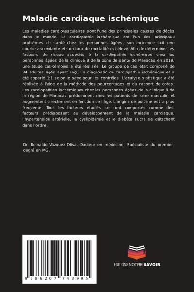 Les maladies cardiovasculaires sont l'une des principales causes de décès dans le monde. La cardiopathie ischémique est l'un des principaux problèmes de santé chez les personnes âgées, son incidence suit une courbe ascendante et son taux de mortalité est élevé. Afin de déterminer les facteurs de risque associés à la cardiopathie ischémique chez les personnes âgées de la clinique 8 de la zone de santé de Manacas en 2019, une étude cas-témoins a été réalisée. Le groupe de cas était composé de 34 adultes âgés ayant reçu un diagnostic de cardiopathie ischémique et a été apparié 1:1 selon le sexe pour les contrôles. L'analyse statistique a été réalisée à l'aide de la méthode des pourcentages et du rapport de cotes. Les cardiopathies ischémiques chez les personnes âgées de la clinique 8 de la région de Manacas prédominent chez les patients de sexe masculin et augmentent directement en fonction de l'âge. L'angine de poitrine est la plus fréquente. Tous les facteurs étudiés se sont comportés comme des facteurs prédisposant au développement de la maladie cardiaque, l'hypertension artérielle, la dyslipidémie et le diabète sucré se détachant dans l'ordre.