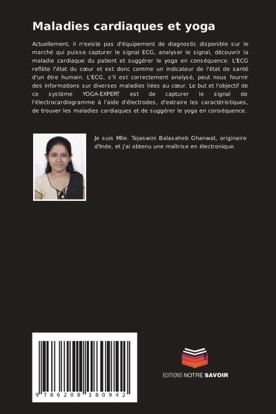 Actuellement, il n'existe pas d'équipement de diagnostic disponible sur le marché qui puisse capturer le signal ECG, analyser le signal, découvrir la maladie cardiaque du patient et suggérer le yoga en conséquence. L'ECG reflète l'état du coeur et est donc comme un indicateur de l'état de santé d'un être humain. L'ECG, s'il est correctement analysé, peut nous fournir des informations sur diverses maladies liées au coeur. Le but et l'objectif de ce système YOGA-EXPERT est de capturer le signal de l'électrocardiogramme à l'aide d'électrodes, d'extraire les caractéristiques, de trouver les maladies cardiaques et de suggérer le yoga en conséquence.