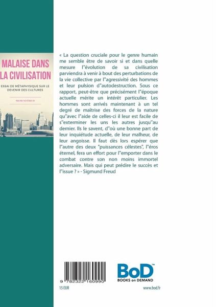 " La question cruciale pour le genre humain me semble être de savoir si et dans quelle mesure l''évolution de sa civilisation parviendra à venir à bout des perturbations de la vie collective par l''agressivité des hommes et leur pulsion d''autodestruction. Sous ce rapport, peut-être que précisément l''époque actuelle mérite un intérêt particulier. Les hommes sont arrivés maintenant à un tel degré de maîtrise des forces de la nature qu''avec l''aide de celles-ci il leur est facile de s''exterminer les uns les autres jusqu''au dernier. Ils le savent, d''où une bonne part de leur inquiétude actuelle, de leur malheur, de leur angoisse. Il faut dès lors espérer que l''autre des deux "puissances célestes", l''éros éternel, fera un effort pour l''emporter dans le combat contre son non moins immortel adversaire. Mais qui peut prédire le succès et l''issue ? " - Sigmund Freud