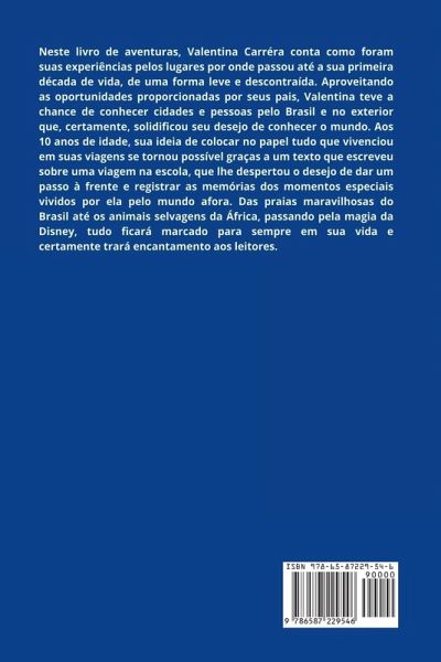 Neste livro de aventuras, Valentina Carréra conta como foram suas experiências pelos lugares por onde passou até a sua primeira década de vida, de uma