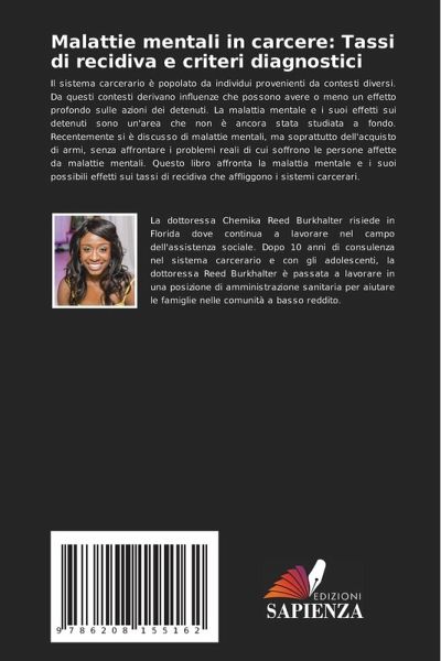 Il sistema carcerario è popolato da individui provenienti da contesti diversi. Da questi contesti derivano influenze che possono avere o meno un effetto profondo sulle azioni dei detenuti. La malattia mentale e i suoi effetti sui detenuti sono un'area che non è ancora stata studiata a fondo. Recentemente si è discusso di malattie mentali, ma soprattutto dell'acquisto di armi, senza affrontare i problemi reali di cui soffrono le persone affette da malattie mentali. Questo libro affronta la malattia mentale e i suoi possibili effetti sui tassi di recidiva che affliggono i sistemi carcerari.