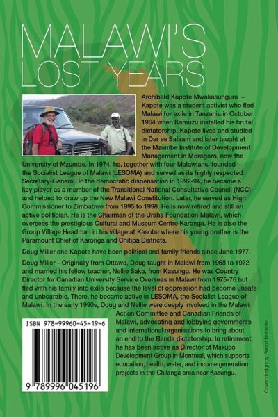 Malawi is a small and poorly known country, but the crimes committed against its people by the brutal dictatorship of Dr Hastings Kamuzu Banda are a part of our shared human history. It is about what happens when governments turn state violence on their own people with impunity. The book gives voice to Malawians who were arbitrarily imprisoned, who fled for their lives into exile, or who suffered silently under the regime's state-sponsored terror from 1964 to 1994. These are not easy stories for the victims to tell and people in power do not want them to be made public. To add to the indignity endured by the regime's victims, Malawi's current leadership has been rehabilitating Banda's image and honouring him, despite well-documented reports of atrocities and abuse of human rights. Nevertheless, even unpleasant history must be openly faced, discussed and acknowledged to provide lessons for the future. The book helps redress this one-sided revision of Malawian history. Fifty years after independence, the Malawi people continue to suffer in absolute poverty and in greater numbers than ever, because the lessons of history from Malawi's lost years have not been learned.