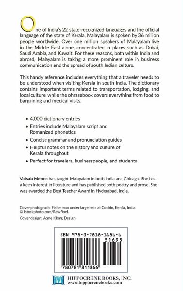 A Malayalam dictionary that contains 4,000 dictionary entries which include native Malayalam scripts and Romanised phonetics. It provides grammar and pronunciation sections.