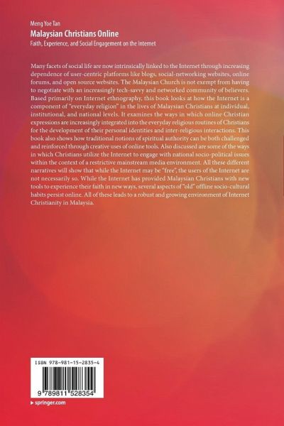 Many facets of social life are now intrinsically linked to the Internet through increasing dependence of user-centric platforms like blogs, social-networking websites, online forums, and open source websites. The Malaysian Church is not exempt from having to negotiate with an increasingly tech-savvy and networked community of believers. Based primarily on Internet ethnography and interviews with Christian bloggers and church pastors, this book looks at how the Internet is a component of "everyday religion" in the lives of Malaysian Christians at individual, institutional, and national levels. It examines the ways in which online Christian expressions are increasingly integrated into the everyday religious routines of Christians for the development of their personal identities and inter-religious interactions. This book also shows how the spiritual authority of church pastors can be both challenged and reinforced through the creative use of online tools. It addresses some of the creative ways in which Christians utilise the Internet to engage with national socio-political issues within the context of restrictive and controlled mainstream media, as well as the ongoing discourse with Islam in the country. Through a selection of case studies, this book shows that while the Internet may be "free", the users of the Internet are not necessarily so. While the Internet has provided Malaysian Christians with new tools to experience their faith in new ways, several aspects of "old" offline socio-cultural habits persist online. These, in turn, lead to a robust and growing environment of Internet Christianity in Malaysia. This timely book will be of interest to scholars in religious studies, media and communications, and cultural studies in Southeast Asia.