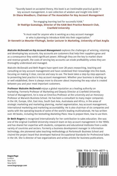 Professor Malcolm McDonald was formerly a Professor of Marketing and Deputy Director at Cranfield University School of Management and is now an Emeritus Professor. Based in the UK, he is also an Honorary Professor at Warwick Business School and the author of Malcolm MacDonald on Marketing Planning, also published by Kogan Page. Dr Beth Rogers was formerly a Business Development Manager at Portsmouth Business School and chaired project board developing National Occupational Standards for UK professional sales. Based in the UK, she is now the Director of two organisations and writes articles for business publications.