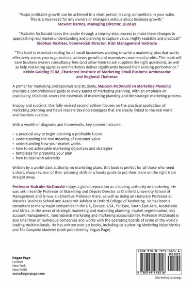 "Once again Professor McDonald has captured the essence of world class marketing planning which is applicable to both the SME and the MNC. His razor sharp focus looks at markets based on the needs of customers and identifying profitable market segments, which whilst logically intuitive, requires a mind-set shift for companies who often focus on forecasts and budgets first in their planning. He takes the reader through a step-by-step process to make these changes in approaching real market understanding and planning to capture value. Highly readable and practical!" Siobhan McAleer, Commercial Director, Irish Management Institute