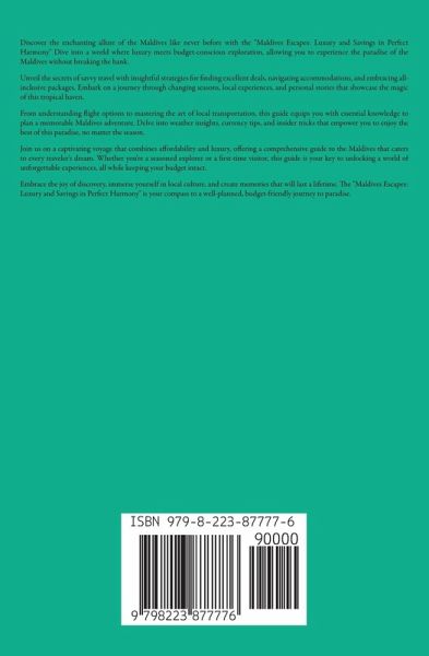 Discover the enchanting allure of the Maldives like never before with the "Maldives Escapes: Luxury and Savings in Perfect Harmony" Dive into a world where luxury meets budget-conscious exploration, allowing you to experience the paradise of the Maldives without breaking the bank. Unveil the secrets of savvy travel with insightful strategies for finding excellent deals, navigating accommodations, and embracing all-inclusive packages. Embark on a journey through changing seasons, local experiences, and personal stories that showcase the magic of this tropical haven. From understanding flight options to mastering the art of local transportation, this guide equips you with essential knowledge to plan a memorable Maldives adventure. Delve into weather insights, currency tips, and insider tricks that empower you to enjoy the best of this paradise, no matter the season. Join us on a captivating voyage that combines affordability and luxury, offering a comprehensive guide to the Maldives that caters to every traveler's dream. Whether you're a seasoned explorer or a first-time visitor, this guide is your key to unlocking a world of unforgettable experiences, all while keeping your budget intact. Embrace the joy of discovery, immerse yourself in local culture, and create memories that will last a lifetime. The "Maldives Escapes: Luxury and Savings in Perfect Harmony" is your compass to a well-planned, budget-friendly journey to paradise.