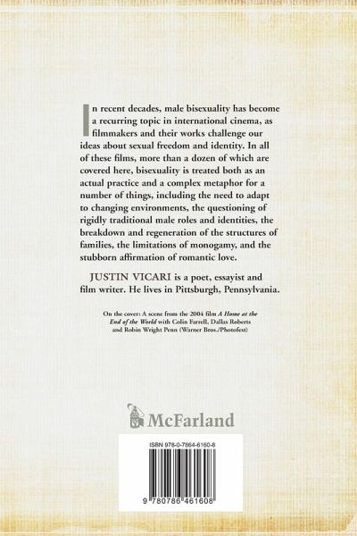 In recent decades, male bisexuality has become a recurring topic in international cinema, as filmmakers and their works challenge our ideas about sexual freedom and identity. In all of these films, more than a dozen of which are covered here, bisexuality is treated both as an actual practice and a complex metaphor for a number of things, including the need to adapt to changing environments, the questioning of rigidly traditional male roles and identities, the breakdown and regeneration of the structures of families, the limitations of monogamy, and the stubborn affirmation of romantic love.
