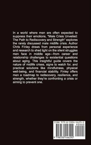In a world where men are often expected to keep their emotions in check and maintain an unyielding front, what happens when they face a crisis that shakes their very foundation? "Male Crisis Unveiled: The Path to Rediscovery and Strength" dives deep into the often overlooked and misunderstood phenomenon of the male midlife crisis, offering a compassionate and insightful guide for men who find themselves questioning the direction of their lives. Chris Finley, through candid reflections and thorough research, brings to light the silent struggles many men face as they navigate the tumultuous waters of middle age. From the personal account of his own crisis sparked by the death of a close friend, to his contemplation on the state of his marriage and the existential dread of aging, Finley's narrative is both relatable and profound. In this groundbreaking book, Finley explores: The Nature of Male Midlife Crisis: ** What triggers it, and how it manifests in various facets of life, from career and relationships to physical and mental health. Signs and Symptoms: ** Understanding the red flags and subtle signals that indicate a man may be experiencing a crisis. Coping Mechanisms and Solutions: ** Practical advice and actionable steps for managing and overcoming feelings of denial, anger, depression, and more. Mindfulness and Physical Well-Being: ** Strategies for maintaining a balanced mind and body through diet, exercise, and mindfulness practices. Financial and Career Guidance: ** How to manage career anxieties, debt, and retirement planning while staying financially secure. Building Resilience: ** How to embrace change, rediscover purpose, and find strength in vulnerability. "Male Crisis Unveiled" serves as both a comforting companion and a practical guide for men at any stage of their life journey. It provides valuable insights not only for those currently facing a crisis but also for young men seeking to prevent one. With a focus on holistic well-being and personal growth, this book aims to empower men to navigate their midlife challenges with grace and strength. *Whether you're dealing with a midlife crisis or seeking to understand and support the men in your life, Chris Finley's "Male Crisis Unveiled" is an essential read that offers hope, guidance, and a path to rediscovery and renewal.*