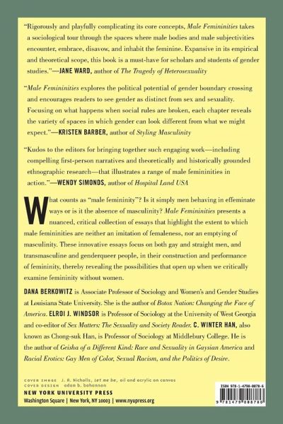 Innovative essays that explore how men perform femininity and what femininity looks like without women What counts as "male femininity?? Is it simply men behaving in effeminate ways or is it the absence of masculinity? Male Femininities presents a nuanced, critical collection of essays that highlight the extent to which male femininities are neither an imitation of femaleness nor an emptying of masculinity. These innovative essays focus on both gay and straight men, and transmasculine and genderqueer people in their construction and performance of femininity, thereby revealing the possibilities that open up when we critically examine femininity without women. Male Femininities asks, What does femininity look like for men? The contributors?highly regarded scholars and rising stars?cover a range of topics, including drag queens, cosmetic enhancements, trans fertility, and gender-non-conforming childhoods. Male Femininities illuminates what happens when we decouple femininity from female bodies and how even the smallest cracks and fissures in the normative order can disrupt, challenge, and in some cases reaffirm our existing sex-gender regime. This volume pluralizes the concept of male femininities and leads readers through an exploration of how gender, sex, and sexuality are manifested in the United States today.