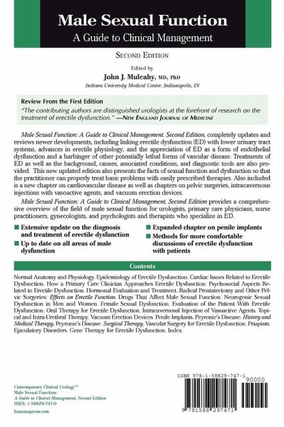 "Mulcahy and 43 contributors, all of them experts in the management of sexual diseases in men, have written the second edition of this book which was first published in 2001. They aimed to provide the reader a comprehensive overview of male sexual dysfunction. ... All practitioners of various disciplines involved in the management of ED and other sexual diseases will find in this book a practical tool, which is useful for the assessment and treatment of most patients." (European Urology Today, August, 2008)