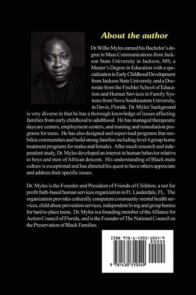 Male Talk is the book that is designed to address some of the questions and concerns that adolescent and teen males have about themselves as they transition from being a child to adolescenthood. Ideally these questions could be answered by their fathers; however the rate of non resident dads has significantly increased therefore many fathers are not in the home. The book is also ideal for teen males whose, dads are at home but who may not feel comfortable talking to their sons about male development. Teens males who are in the child welfare system, in the juvenile justice system, athletic programs, or Male Responsibility development programs would also benefit greatly from reading this book. This book is divided into 13 easy to read chapters. Some of chapters address Puberty, Shaving, Dating Sexuality, STDs, Spirituality, just to name a few. It is direct, somewhat humorous, and addresses serious questions that male youth have regarding positive male development.