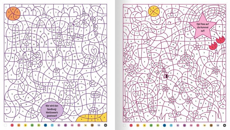 Ausmal- und Rätselspaß mit geballter Einhorn-Power bieten diese beiden Bände: Beim Ausmalen nach dem Farbschlüssel entstehen aus den Bildfeldern kleine Szenen aus der Welt der Einhörner, während beim Verbinden der Punkte auf jeder Seite etwas Interessantes zu entdecken gibt.