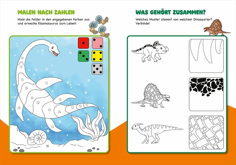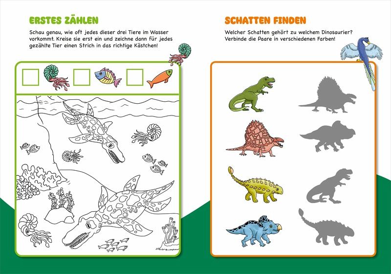 Die Dinos sind los! Bunte Rätsel und fröhliche Malbilder sorgen für viel Spaß und Unterhaltung für Kindergartenkinder. Kleine und große Dinos liefern coole Aufgaben wie Sudokus, Labyrinthe und Malen nach Farben. Durch abgerundete Ecken und eine Fadenheftung ohne Klammern ist das Heft altersgerecht gestaltet. Die Übungen fördern die Konzentration und die Feinmotorik. Empfohlen für Kinder ab 3 Jahren.