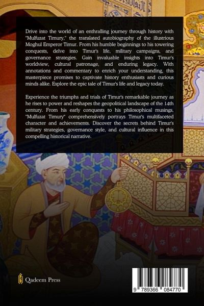 Embark on an unforgettable journey through the annals of history with Mulfuzat Timury, the mesmerizing autobiography of the legendary Moghul Emperor Timur, meticulously translated by Major Charles Stewart. Delve into the captivating life of Timur, also known as Tamerlane, as he rises from humble beginnings to become one of the most formidable conquerors of the 14th century. Timur's memoirs, originally penned in Persian, offer a rare glimpse into the mind of a visionary leader whose military prowess reshaped the landscape of Central Asia, Persia, and beyond. Through vivid narratives and insightful reflections, Timur recounts his epic conquests, strategic brilliance, and the enduring legacy of his empire. Discover the intricacies of Timur's governance style as he navigates the complexities of ruling over vast territories, fostering stability, and promoting cultural flourishing. His patronage of the arts, architecture, and scholarship highlights a ruler who transcended mere conquests to leave an indelible mark on the cultural heritage of the regions he conquered. As you journey through the pages of "Mulfuzat Timury," you'll encounter Timur's personal reflections and philosophies, offering profound insights into his worldview, beliefs, and the enigmatic forces that drove his relentless pursuit of power and glory. This translated edition of Timur's autobiography is accompanied by annotations and commentary, providing invaluable context and analysis for modern readers. Whether you're a seasoned history enthusiast or a curious explorer of the past, "Mulfuzat Timury" promises to captivate, educate, and inspire with its rich tapestry of historical intrigue and timeless wisdom. Prepare to be enthralled by the epic saga of Timur, the Moghul Emperor whose legacy continues to echo through the corridors of history. Experience the thrill of adventure, the drama of conquest, and the profound insights of a remarkable leader with Mulfuzat Timury - a masterpiece that transcends time and space to offer a window into the soul of a conqueror.