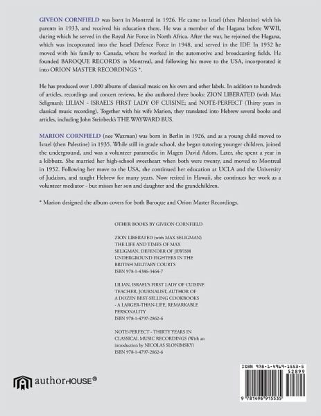 The authors (note plural) of this collection of short stories have led long and sometimes turbulent lives . Both came as young children to what was at the time British-ruled Palestine in the 1930s. Chance brought them together in high school in Tel-Aviv in 1942, and they have been together ever since, through thick and thin, in what they consider the most enduring union of two souls they know. The stories they recount range from the humorous, ironic, through near-tragic; A journalist who interviewed the couple on Valentine's Day in 2000 called them "A Republic of Two".(which is one of the chapters)