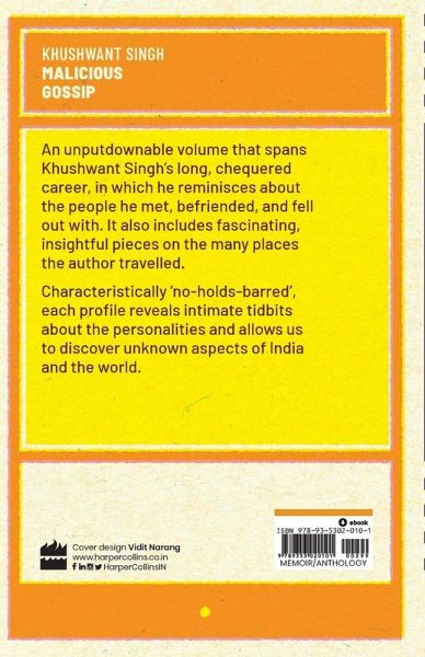 An unputdownable volume that spans Khushwant Singh's long, chequered career, in which he reminisces about the people he met, befriended, and fell out with. It also includes fascinating, insightful pieces on the many places the author travelled.Characteristically 'no-holds-barred', each profile reveals intimate titbits about the personalities and allows us to discover unknown aspects of India and the world.
