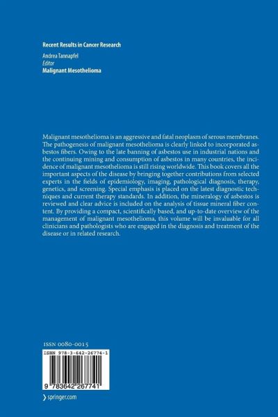"This volume in the Recent Results in Cancer Research series reviews the rare malignancy of mesothelioma, covering not just clinical aspects of the disease process, but also scientific information about asbestos and areas of current translational research. ... This book is designed for oncologists, radiologists, thoracic surgeons, pathologists, and pulmonologists ... . This is an excellent reference for any scientist or clinician whose work requires in-depth understanding and familiarity with mesothelioma. ... I am glad to add to my library." (Melissa L. Johnson, Doody's Review Service, July, 2011)
