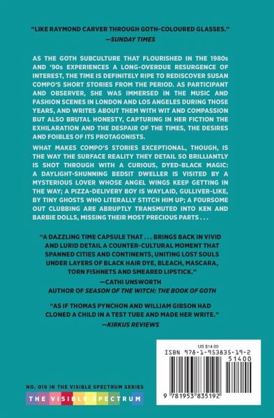 As the Goth subculture that flourished in the 1980s and '90s experiences a long overdue resurgence of interest, the time is definitely ripe to rediscover Susan Compo's short stories, hailed at the time as "like Raymond Carver through Goth-coloured glasses" (Sunday Times). As participant and observer, Compo was immersed in the music and fashion scenes in London and Los Angeles during those years, and writes about them with wit and compassion but also brutal honesty, capturing in her fiction the exhilaration and the despair of the times, the desires and foibles of its protagonists. What makes her stories exceptional, though, is the way the surface reality they detail so sharply is shot through with a curious dyed-black magic: a daylight-shunning bedsit dweller is visited by a mysterious lover whose angel wings keep getting in the way; a pizza-delivery boy is waylaid, Gulliver-like, by tiny ghosts who literally stitch him up; a foursome out clubbing are abruptly transmuted into Ken and Barbie dolls, missing their most precious parts . . .