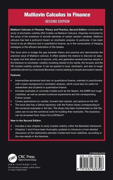 "Malliavin calculus, alongside Ito calculus, is emerging as a vital tool for researchers in the area of financial engineering. This book provides an unprecedented and balanced account, taking the reader from theoretical foundations to practical applications, including state-of-the-art research topics like rough volatility and VIX option skew." - Colin Turfus