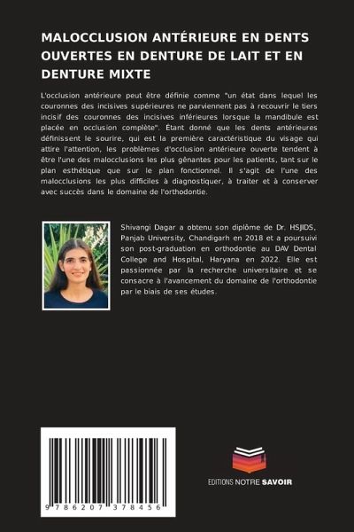 L'occlusion antérieure peut être définie comme "un état dans lequel les couronnes des incisives supérieures ne parviennent pas à recouvrir le tiers incisif des couronnes des incisives inférieures lorsque la mandibule est placée en occlusion complète". Étant donné que les dents antérieures définissent le sourire, qui est la première caractéristique du visage qui attire l'attention, les problèmes d'occlusion antérieure ouverte tendent à être l'une des malocclusions les plus gênantes pour les patients, tant sur le plan esthétique que sur le plan fonctionnel. Il s'agit de l'une des malocclusions les plus difficiles à diagnostiquer, à traiter et à conserver avec succès dans le domaine de l'orthodontie.